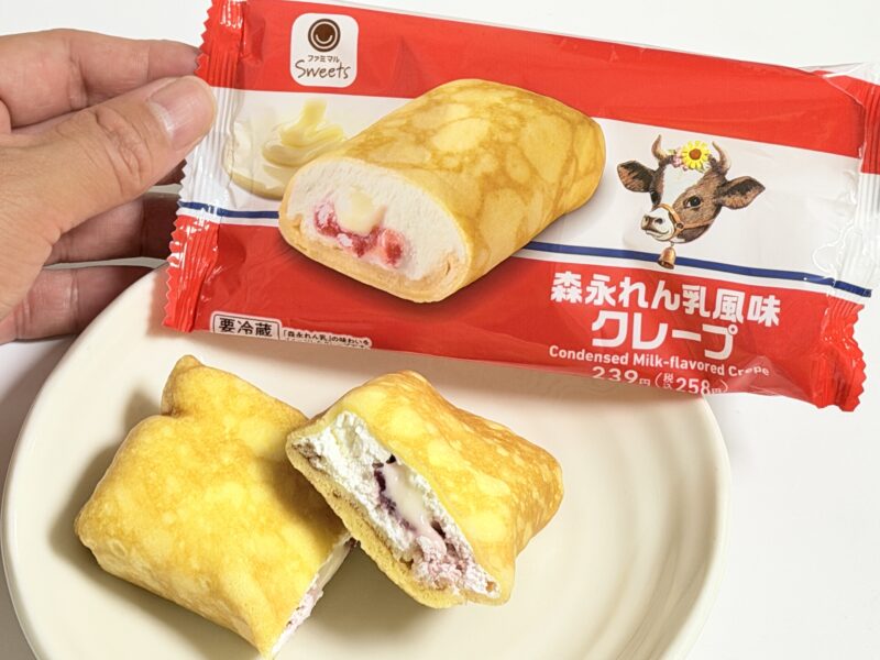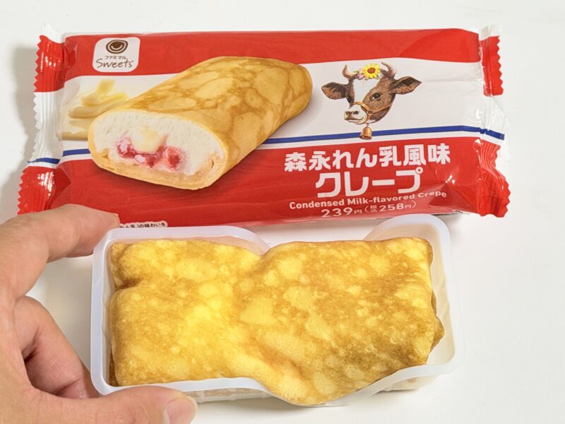 ということで紹介するのは、2025年9月30日からファミマから発売したスイーツ、森永れん乳風味クレープ。
