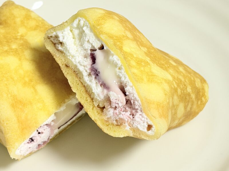一口食べてみるとフワッとしたクレープ生地の中に我が家下でフルーティーなストロベリーソースの酸味と甘味、そして練乳の優しい甘さが口の中に広がります。