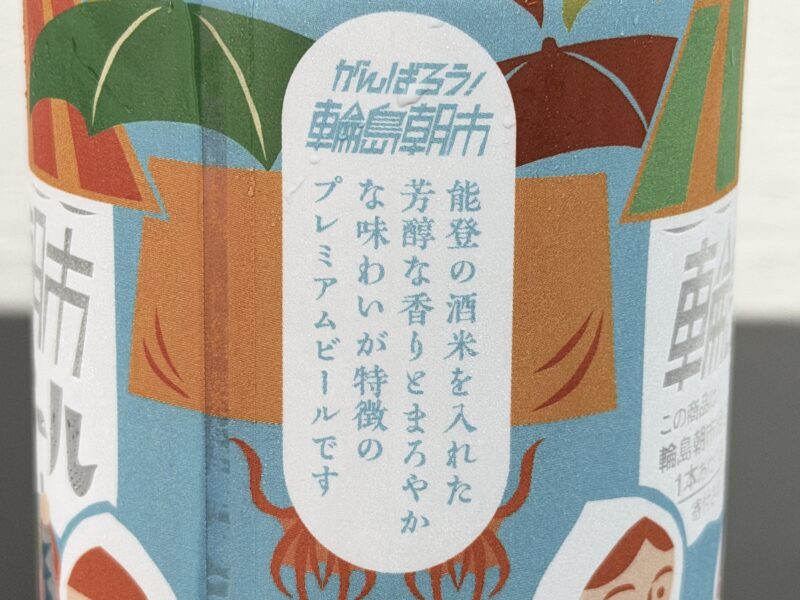「がんばろう!輪島朝市」という文字と共にビールの特徴が書かれています。