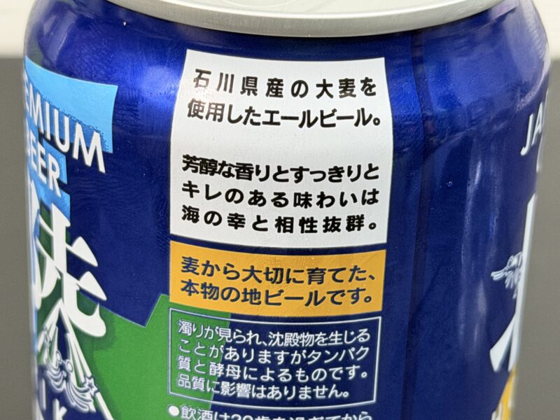 石川県産の大麦を使用したエールビールで、芳醇な香りとキレのある味わいは海の幸と相性抜群。とのこと。