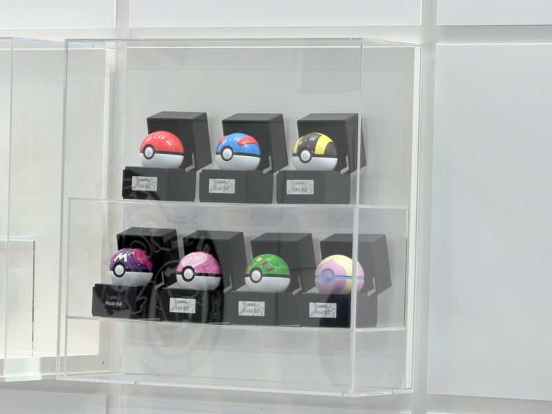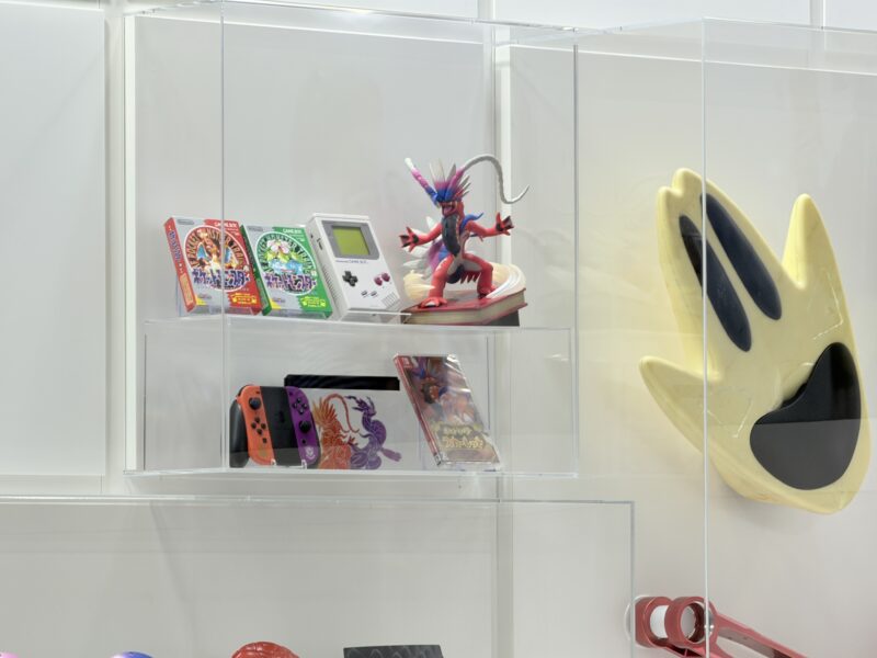 この、ミライドン・コライドンの展示の周りには、よく見るとポケモンボールが展示してあったり、初代のゲームボーイ+ポケモン緑・赤の展示も。