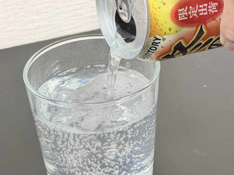 グラスに注いでみると、ほんの少し白濁していますが、ほぼ透明な見た目をしています。