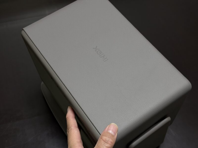 周りの表面にはシボがうっすら入っており、革張りっぽい見た目をしています。天面にはXGIMIのロゴが控えめに入っています。