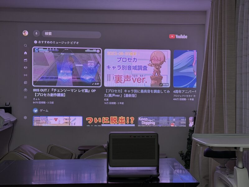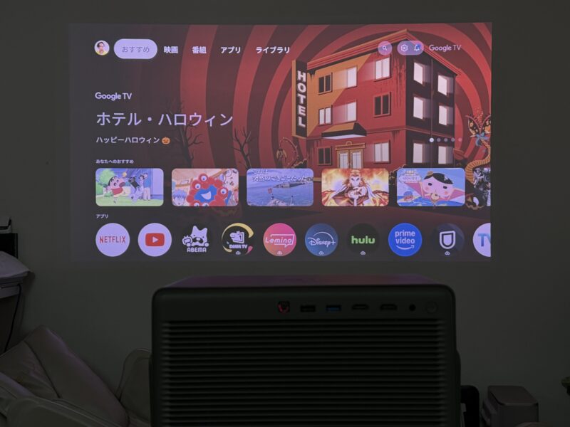 これだけ明るいプロジェクターがあれば、もはや物理的なテレビも不要かもしれませんね。