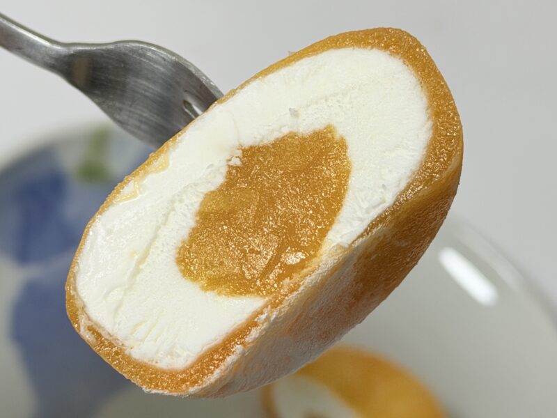 早速食べてみると、外側のおもち部分もマンゴーの味がほんのりとします。