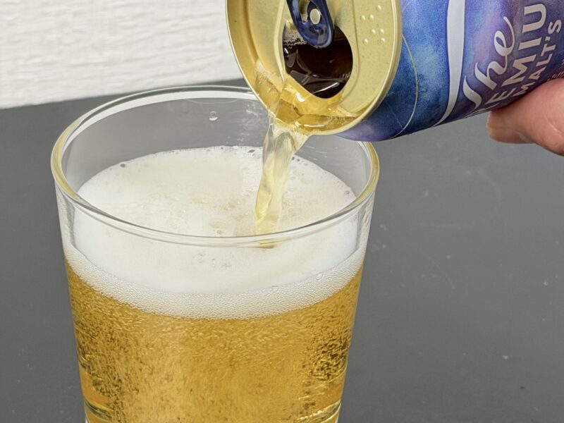 グラスに注いでみるとさすが神泡のプレモル。泡立ちがきめ細やかです。