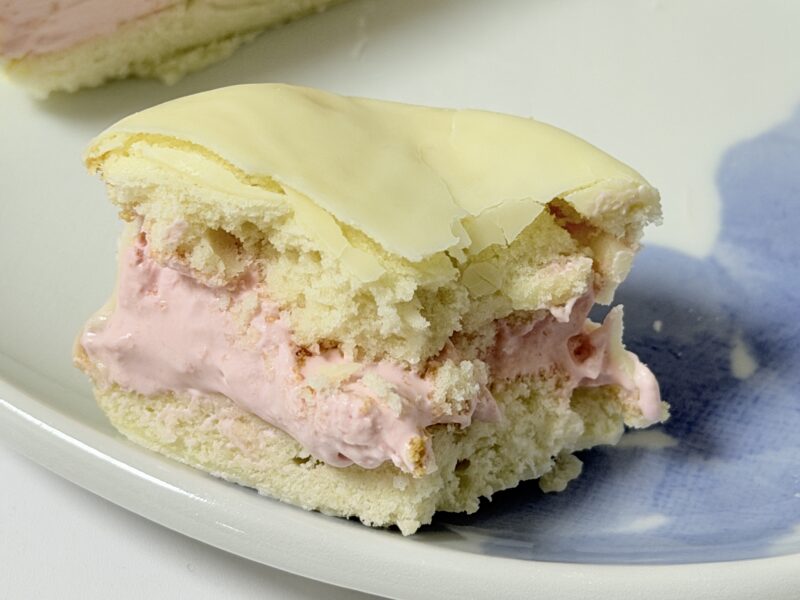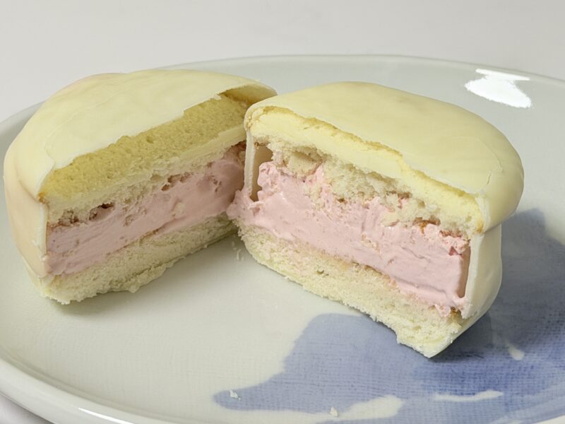 実際に食べてみると、パリッとした外側のホワイトチョコと、しっとりふんわりとしたケーキの中に、たっぷりの苺ホイップの味が口の中に広がります。