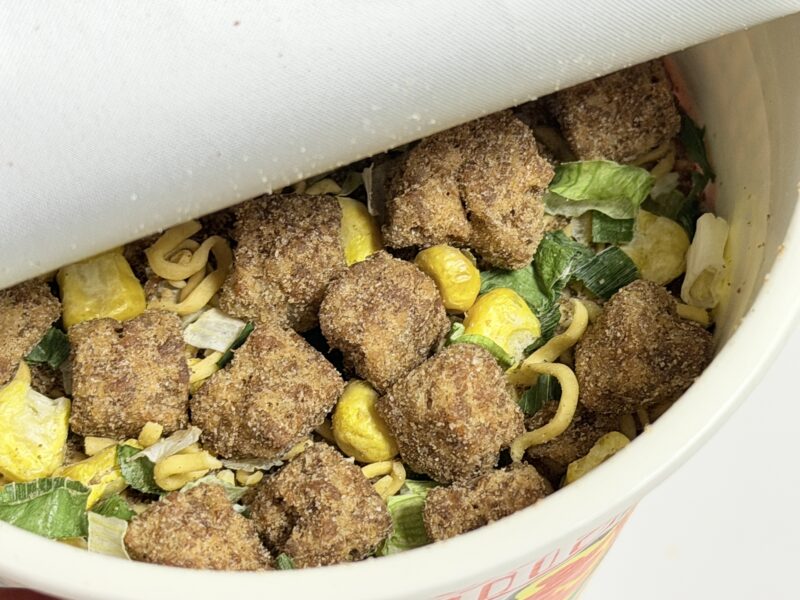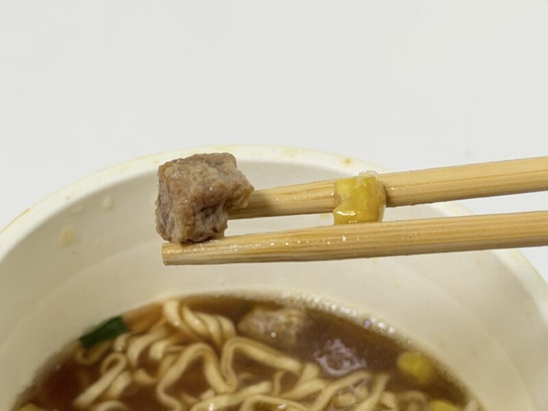 蓋を開けると、思った以上にゴロゴロとたっぷりの謎肉が入っていました。