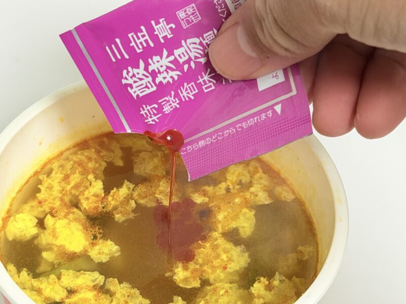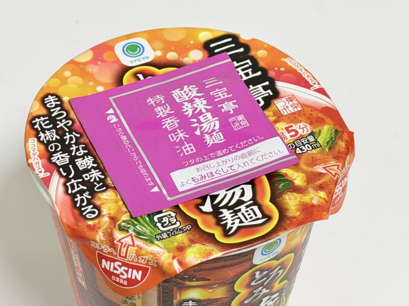 蓋の上に特製香味油がついており、最後に入れます。