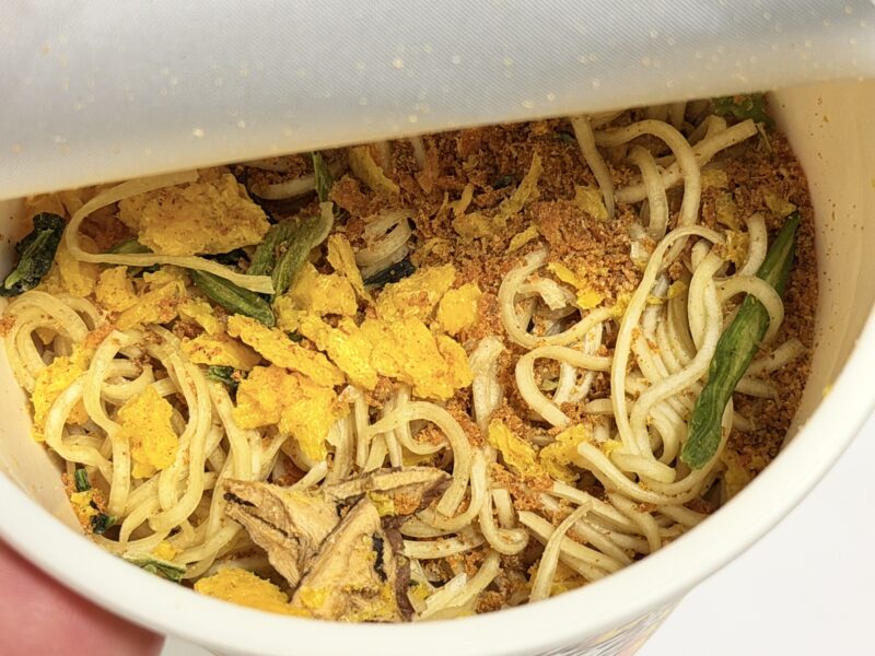 蓋を開けると、スープが多いのか麺が沈んだままなのかちょっと寂しい感じがします。