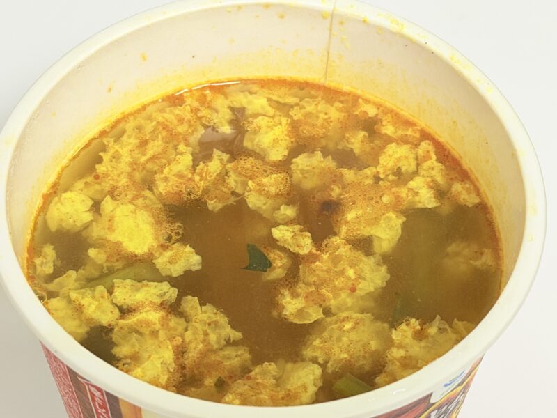 しっかりと混ぜ直すと、トロミのあるスープになりました。皆さんも食べる時はしっかりと混ぜてから食べることをお勧めします。