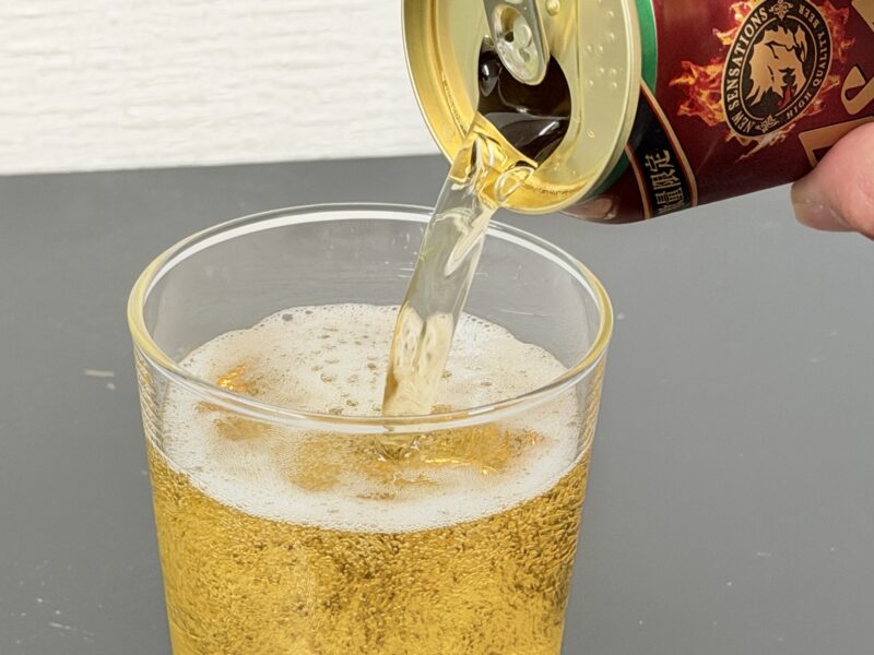 グラスに注ぐと、普通のビール。泡立ちは控えめです。