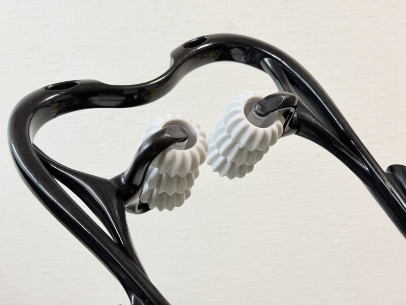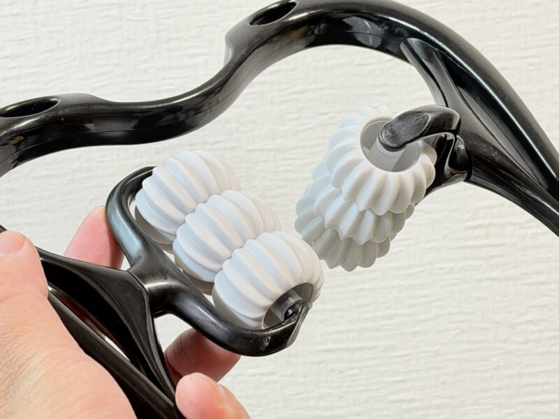 これ、ローラー部分は角度を変更することが可能で、凝っている部分を挟み込むようにして、グリグリと動かすマッサージ機です。