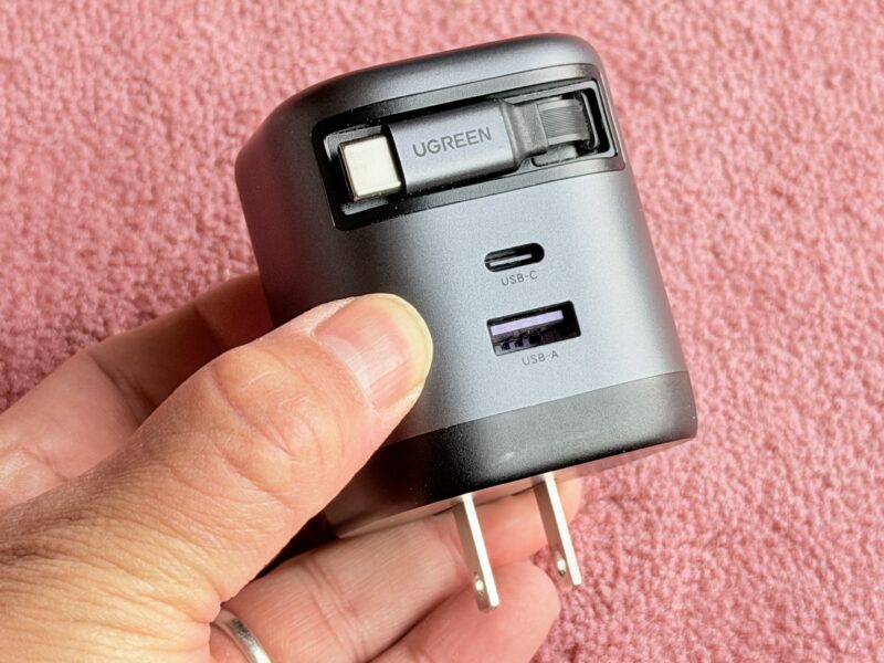 持ち歩く充電器やケーブルをなるべく減らしたい、という人はUGREENのケーブル巻取り式のこちらがおすすめ。