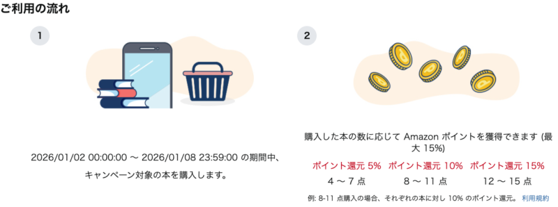 なお、15冊以上購入することはできず、15冊まで購入するとキャンペーンとしては完了となります。