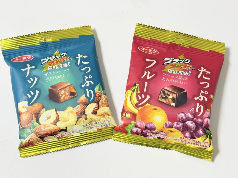 ということで紹介しました、ブラックサンダーひとくちサイズ たっぷりナッツ・たっぷりフルーツ。