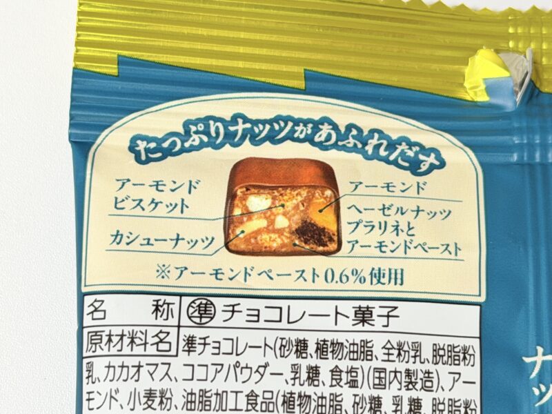たっぷりナッツの方は、アーモンドビスケット、アーモンド、カシューナッツ、プラリネとアーモンドペーストが入っています。