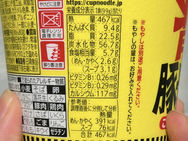 ということで紹介しました、カップヌードル 背脂豚骨醤油 ビッグ。