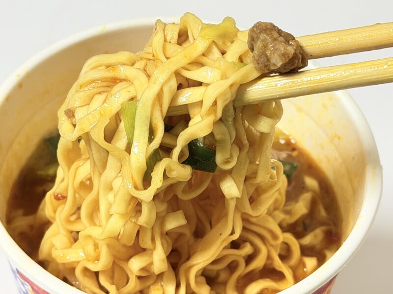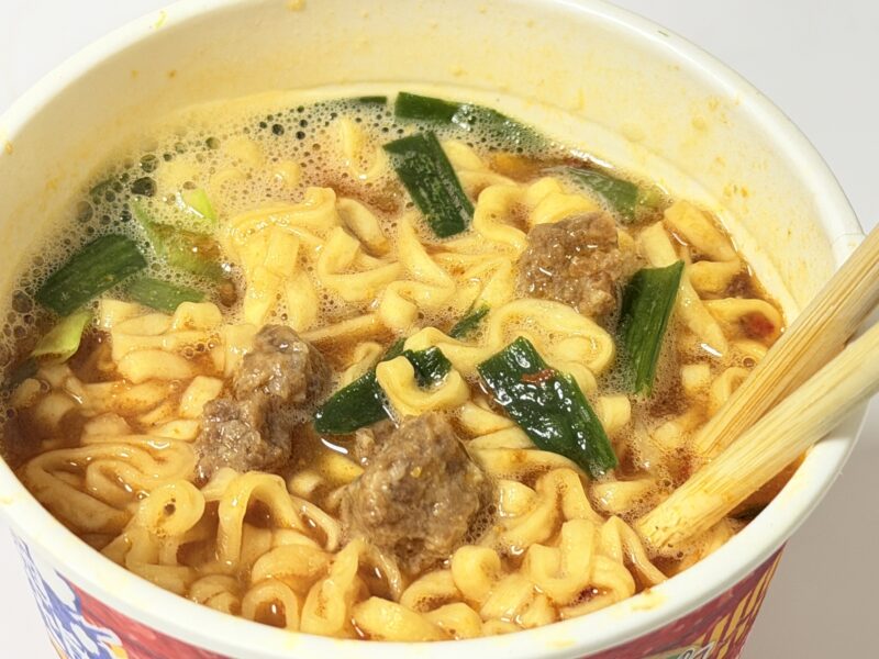 しっかり辛くて、日清のカップヌードルの辛さレベル3と書かれていましたが、それ以上に辛いのでは?と感じました。