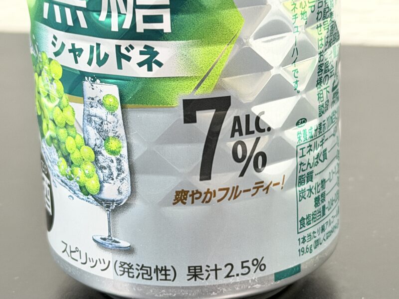 今回、期間限定として販売されたシャルドネは、果汁2.5%で爽やかフルーティー!と書かれています。