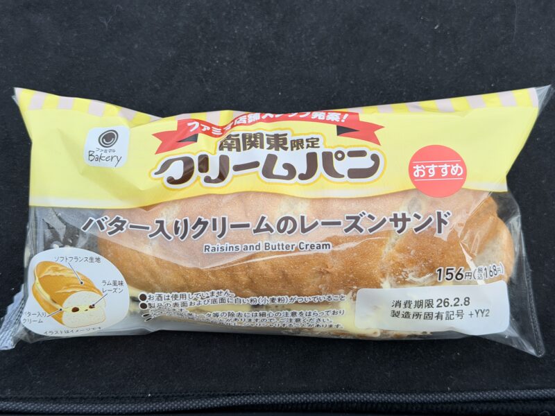ということで紹介するのは、2026年2月3日からファミマで発売されている、南関東限定 クリームパン バター入りクリームのレーズンサンド。