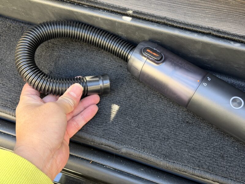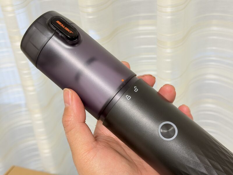 ということで実際に使ってみました、SEALIGHTの車用掃除機、コードレス ハンディクリーナー。
