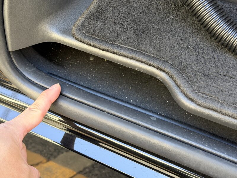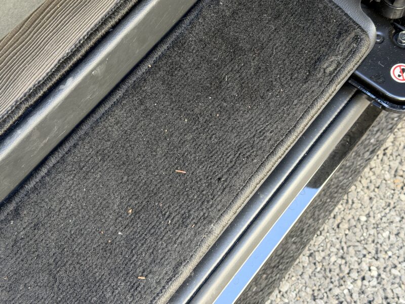例えばこちら、ステップ部分のフロアマット。掃除前はこんな感じで、細かいゴミが入り込んでいます。