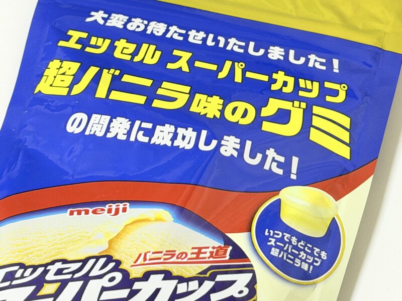 ということで紹介するのは、2026年2月3日から発売の新商品、明治 エッセルスーパーカップ超バニラ味グミ。