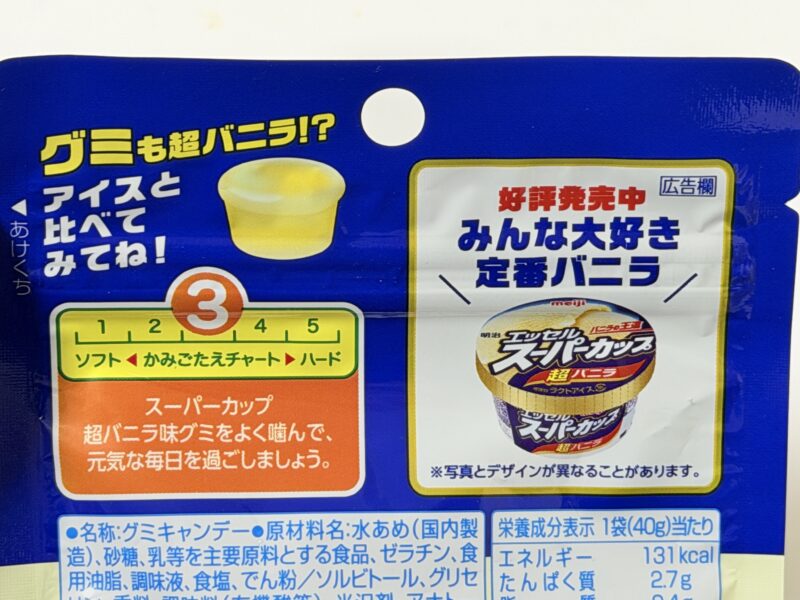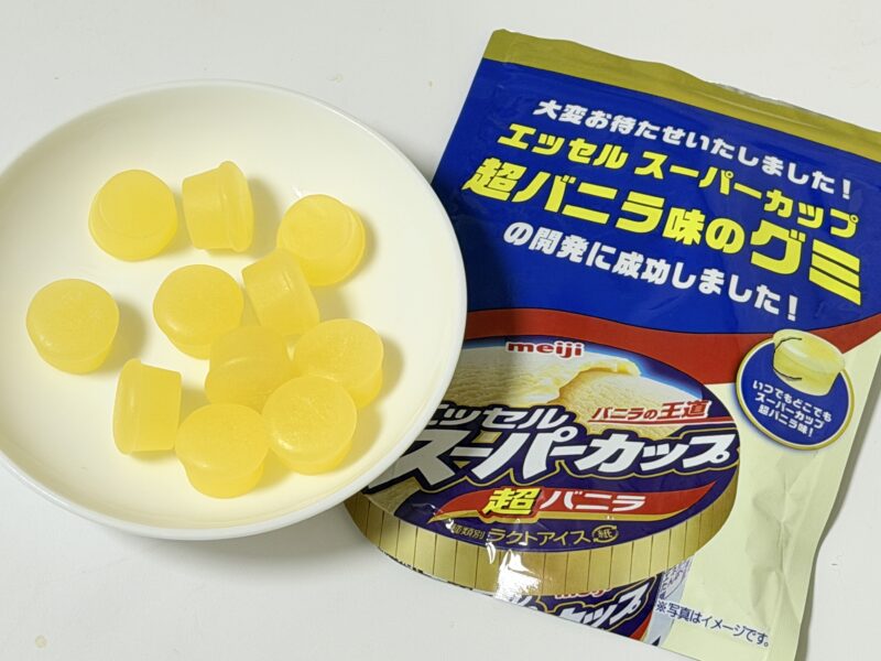 ということで紹介しました、明治 エッセルスーパーカップ超バニラ味グミ。