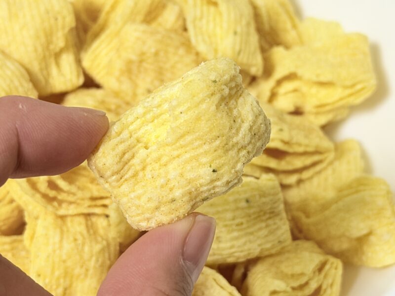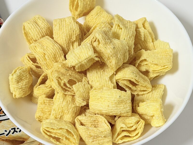 味の方は、イメージとしてはとんがりコーン的なコーン菓子で、そこにシリーズによって色々な味付けがされていると説明するとわかりやすいと思います。