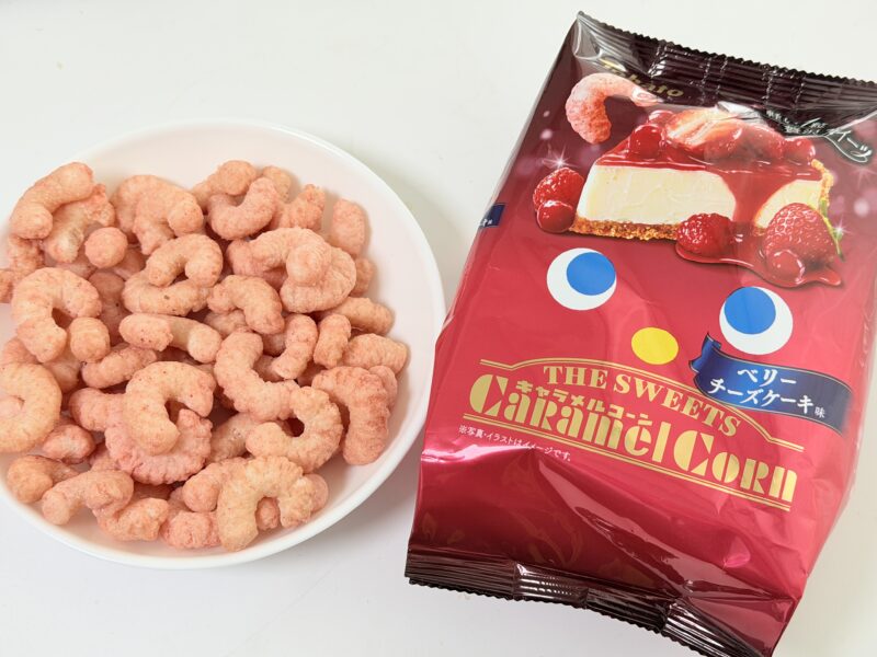 ということで紹介しました、キャラメルコーン・ベリーチーズケーキ味。