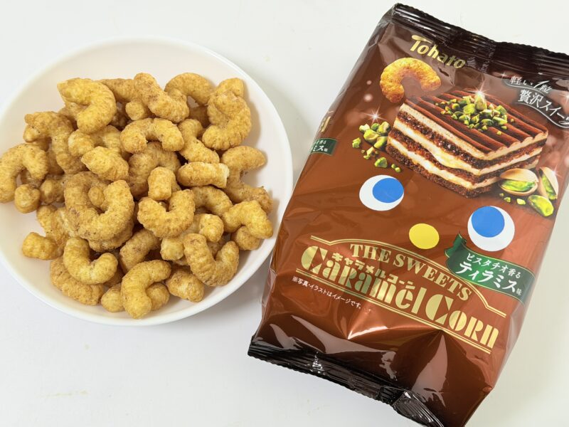 ということで紹介するのは、2026年2月9日から発売となる、キャラメルコーン・ピスタチオ香るティラミス味。