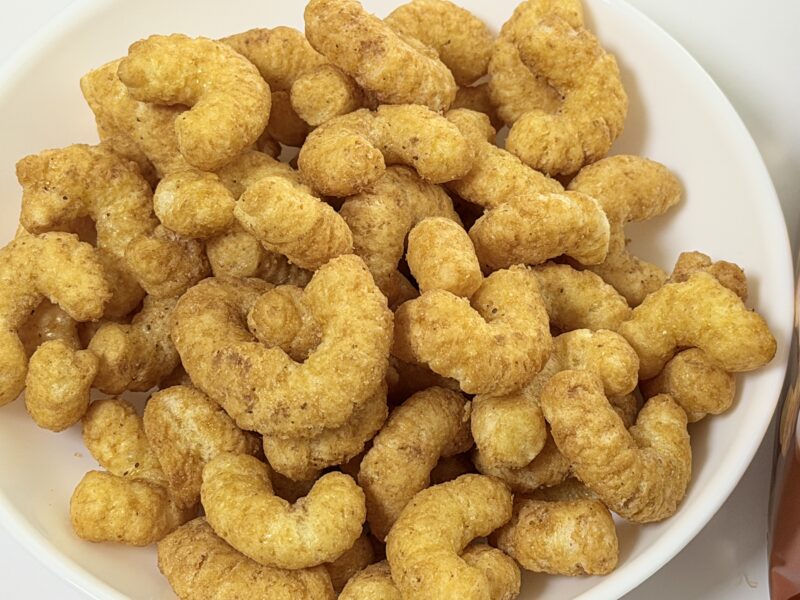 色味は通常のキャラメルコーンよりも濃い感じ。この時点でチーズの良い香りがします。