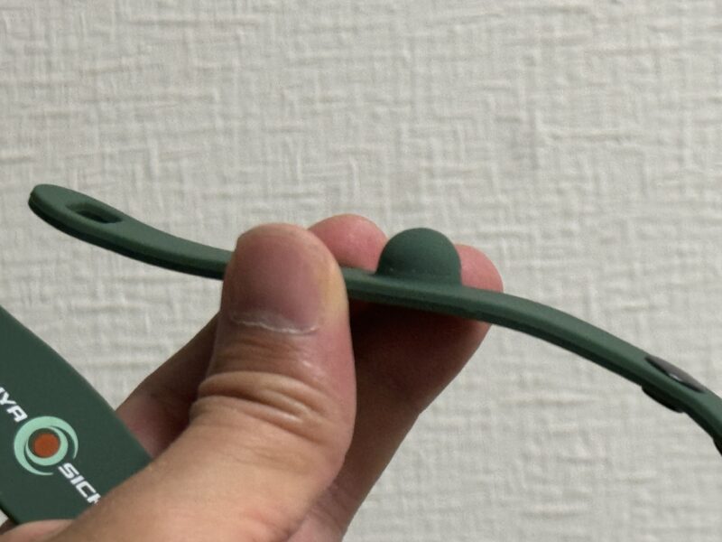 バンドの内側には、こんな感じの突起がついています。これを手首の内側に押し当てる感じで装着させます。