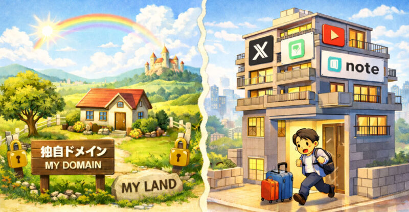 独自ドメインを取るべきかを悩んでいた時に、先輩ブロガーさんに「URLはインターネット上の住所。独自ドメインは自分の土地を買ったみたいな感じ。他者サービスに乗っかるのは、賃貸マンションと一緒で立派で見つけやすいかもしれないけど、何か理由があると追い出される危険性があるんだよね」と言われて納得しました。