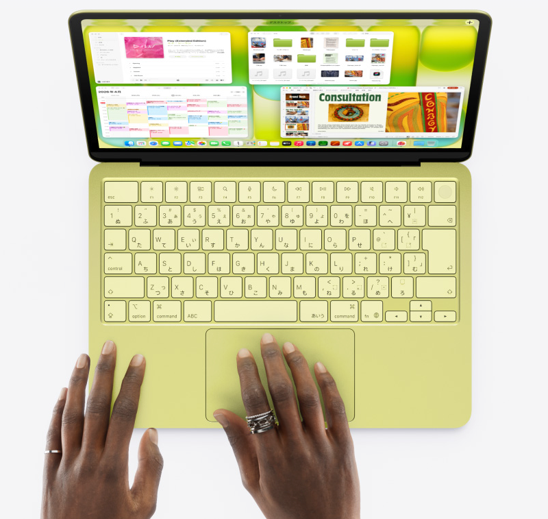 特筆すべきは、チップがここ最近のMac用の「M〜」チップではなく、iPhone16ProやProMaxに採用されていたA18 Proチップ搭載ということ。これにより、低電力・高効率かつ、低価格で提供できるMacBookシリーズが生まれたというわけです。