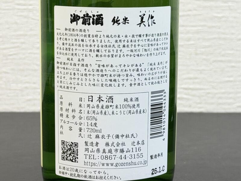 岡山の地酒「御膳酒 純米 美作」