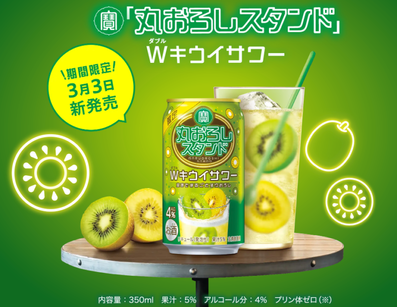 ということで紹介するのは、2026年3月3日から発売されている、宝酒造の「丸おろしスタンド」〈Wキウイサワー〉。