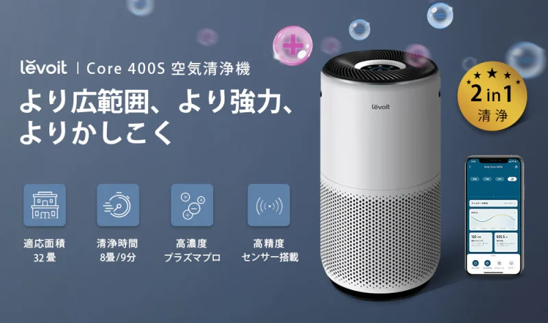 空気清浄機ブランド「Levoit(レボイト)」の中でも、最上位モデルに位置するのが今回紹介する、「Levoit Core 400S」。