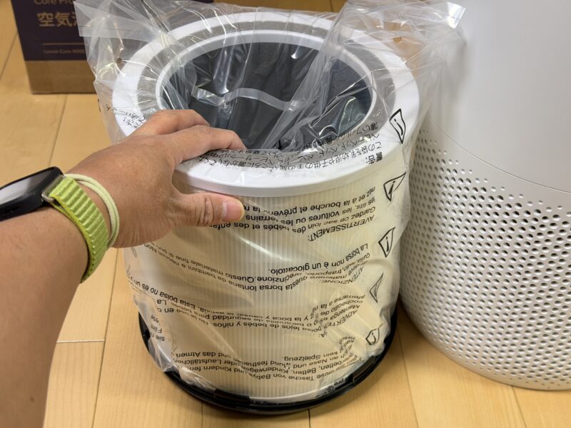 指示の通り、一旦逆さにして、フィルターを取り外してビニール包装を取り外します。