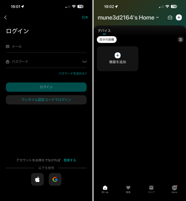 新規にアカウントを作成し、Bluetooth /WiFiの利用に許可をすると、自宅内にある対象機器をリストアップしてくれます。