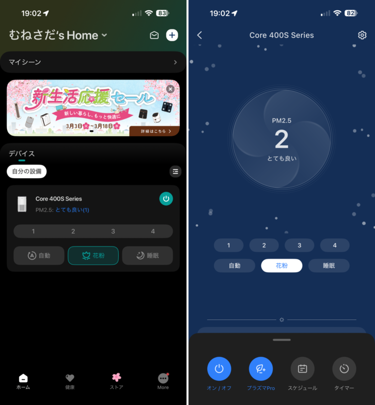 最寄駅に着いたらハイパワーに切り替えると帰宅時により綺麗な空気な自宅にできている、なんて使い方も良いかもしれませんね。
