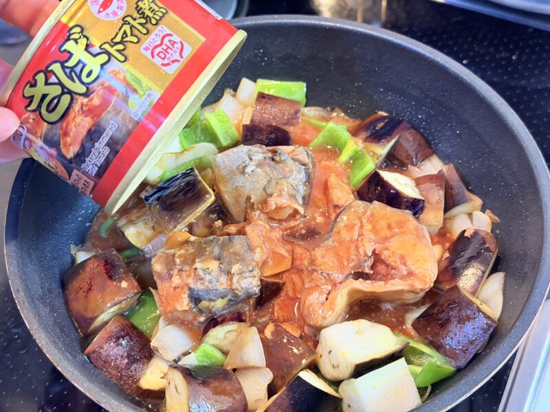 サバ缶は汁ごと全部入れ込みましょう。
