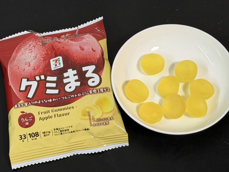 ということで紹介しました、セブンプレミアムのグミまる りんご味。