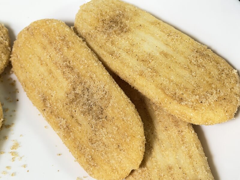 ハッピーターンと同じくしっかりと粉が大量についています。