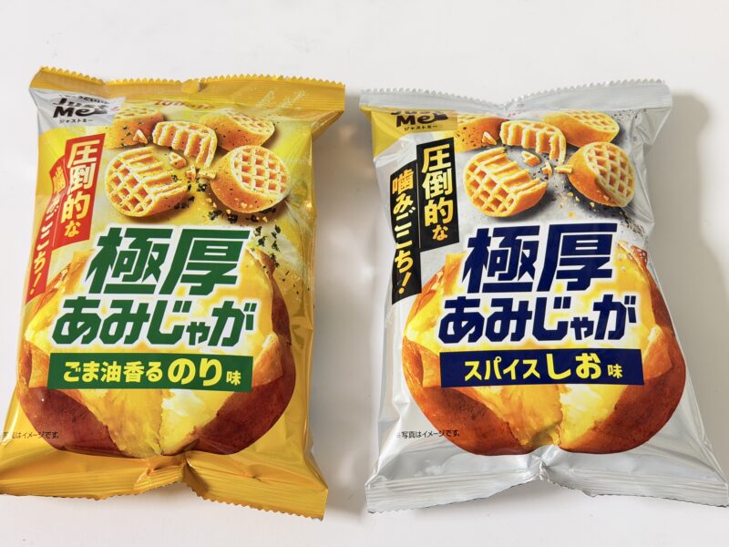 ということで紹介しました、極厚あみじゃが スパイスしお味・ごま油香るのり味。