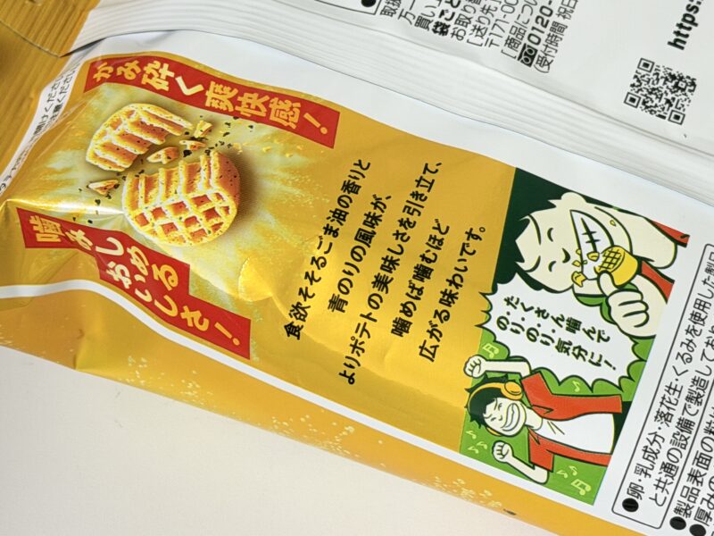 ごま油香るのり味は、ごま油の香りと青のりの風味がポテトの美味しさを引き立てます。