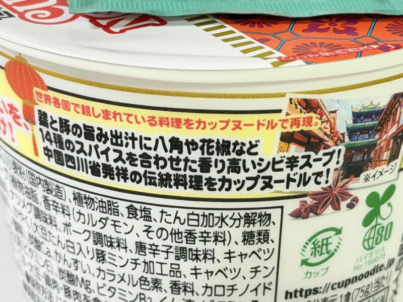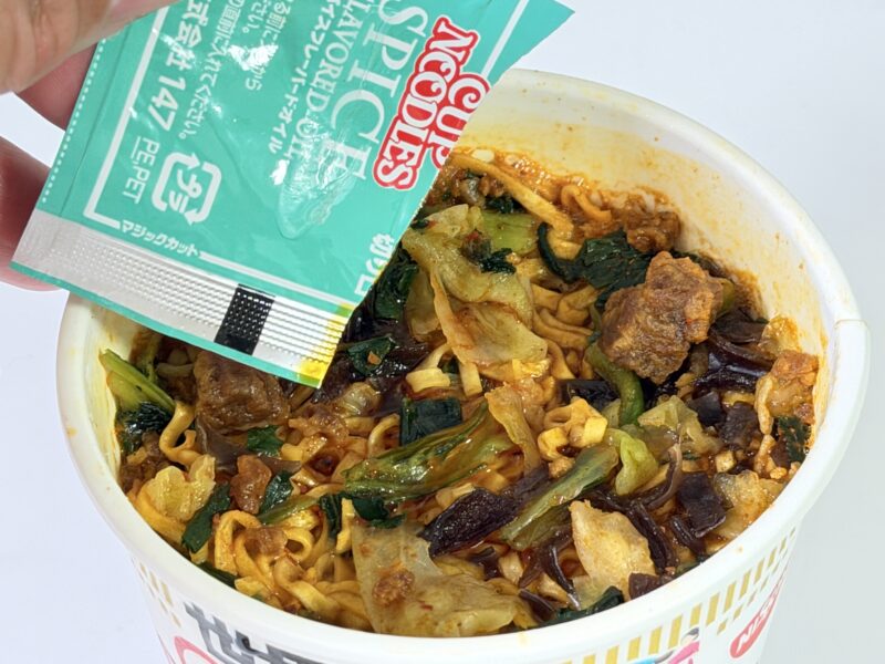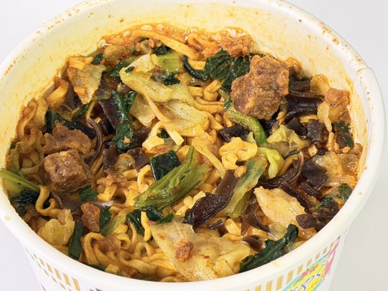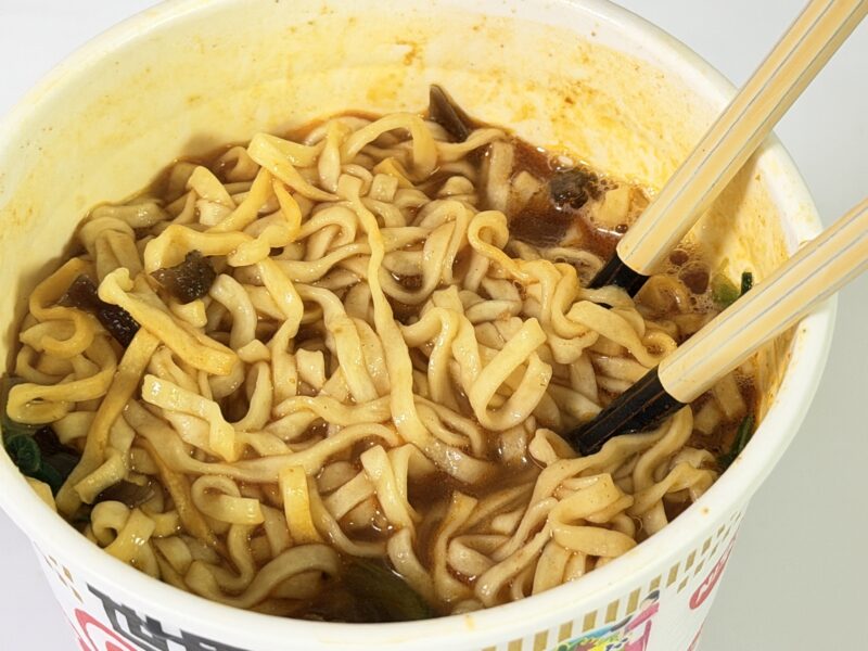 早速一口食べてみると、八角や花椒のスパイスの奥深い味わいのスープとカップヌードルらしい麺の組み合わせがたまりません。