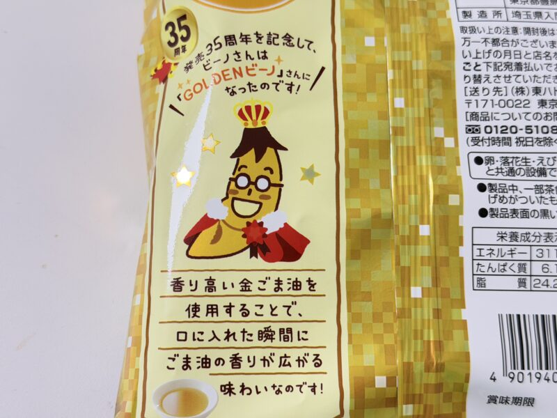 ということで紹介しました、東ハト ゴールデンビーノ 香り高い金ごま油味。