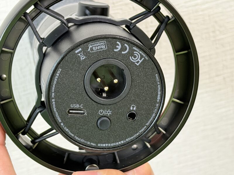 お尻側には、電源ボタン、USB Type-Cの端子とXLRの端子、イヤホン端子があります。